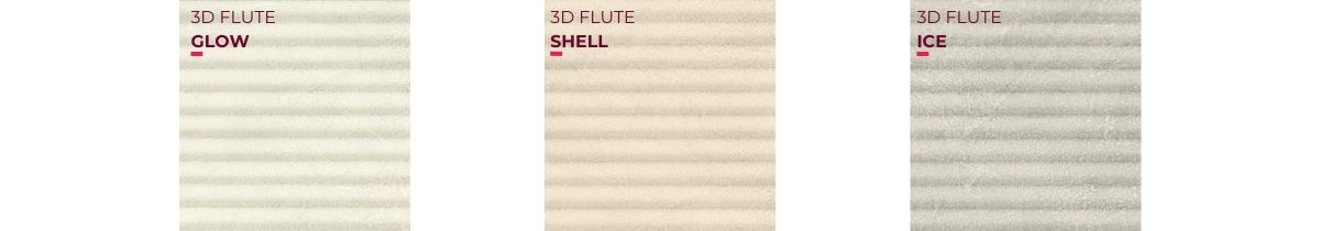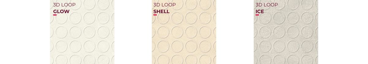 Drsný zrnitý povrch Grain pripomína omietku a nájde si svoje miesto v kúpeľni aj iných častiach interiéru. Life, to sú palmové listy odtlačené do ešte vlhkého betónu, nádherné v prírodne ladených priestoroch. Skutočne 3D sú potom Flute s pozdĺžnymi ryhami a kruhový Loop – povrchy určené pre skutočných fajnšmekrov.